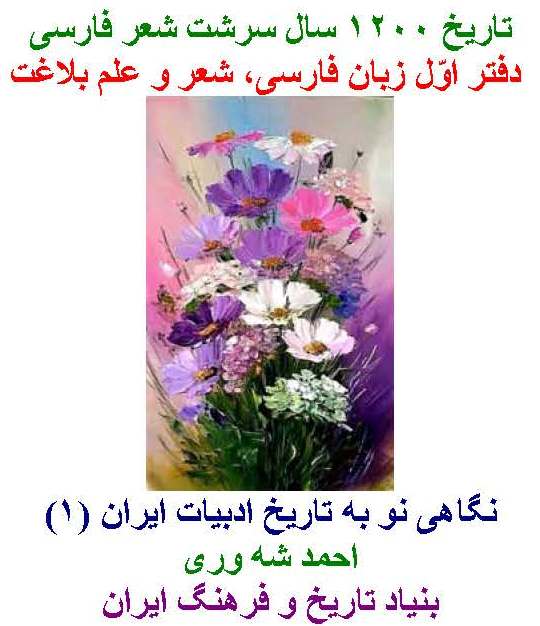 احمد شه وری.تاریخ 1200 سال سرشت شعر فارسی. دفتر اوّل زبان فارسی، شعر و علم بلاغت ۱394. 292 صفحه.