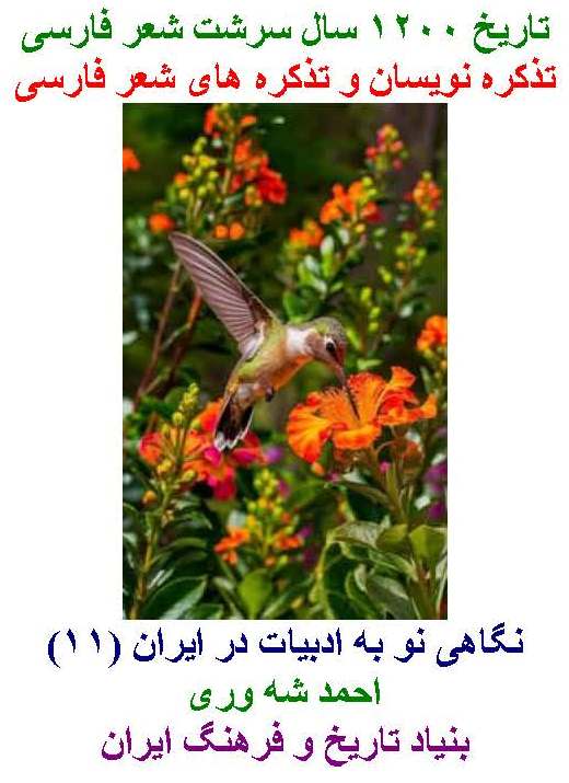احمد شه وری.تاریخ 1200 سال سرشت شعر فارسی. دفتر یازدهم: شرح حال تذکره نویسان و تذکره های شعر فارسی. 1397. 390 صفحه.