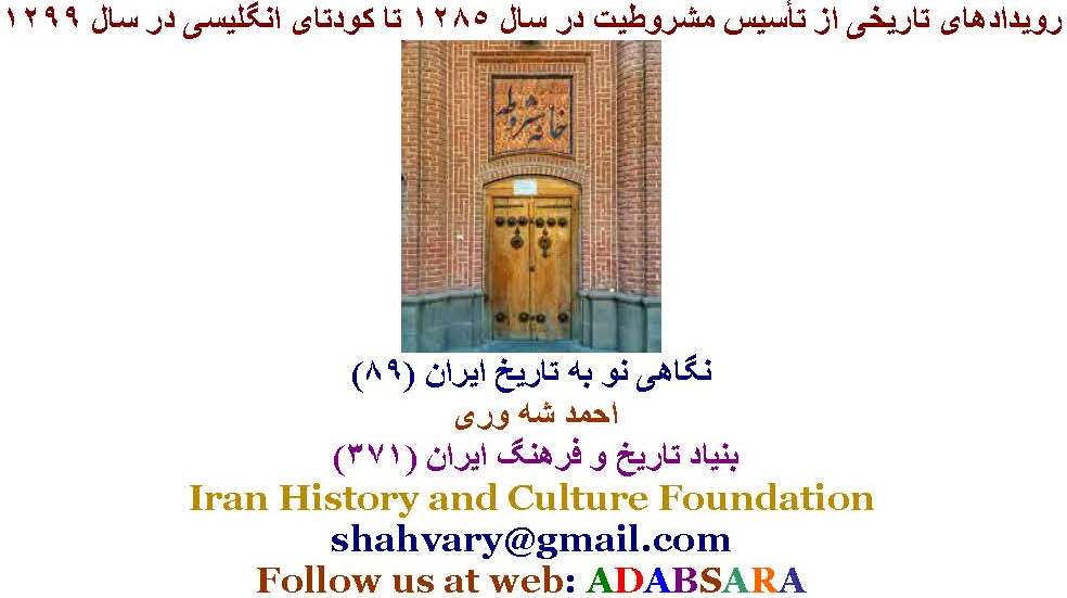 احمد شه وری. رویدادهای تاریخی از تأسیس مشروطیت در سال 1285 تا کودتای انگلیسی در سال 1299. 261 صفحه. 2024/1403