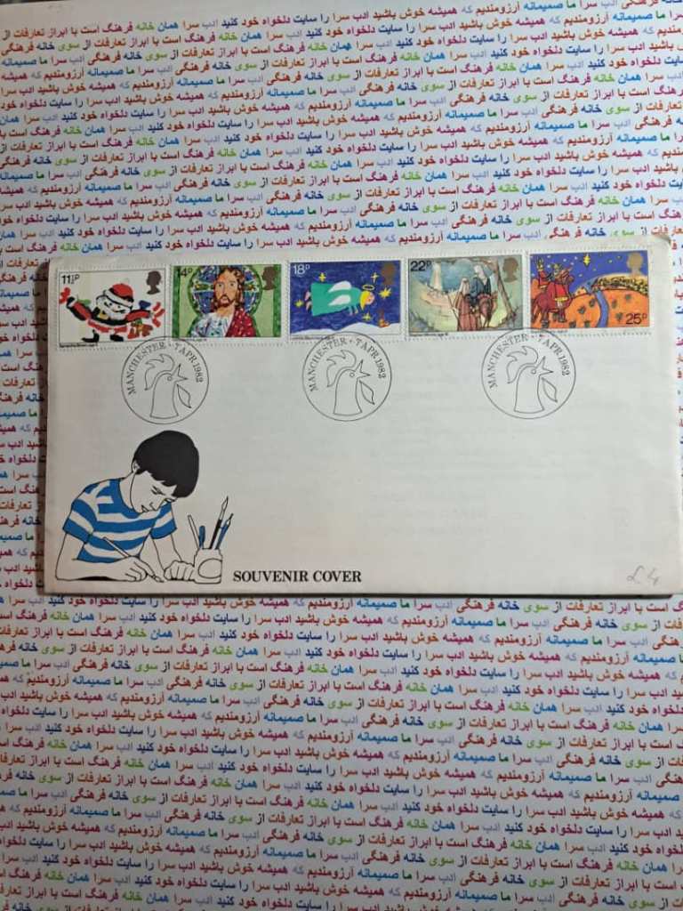 شرح کالا: پاکت مهر روز کریسمس 1981انگلیس منتشر شده در 7 آوریل 1982 در منچستر
