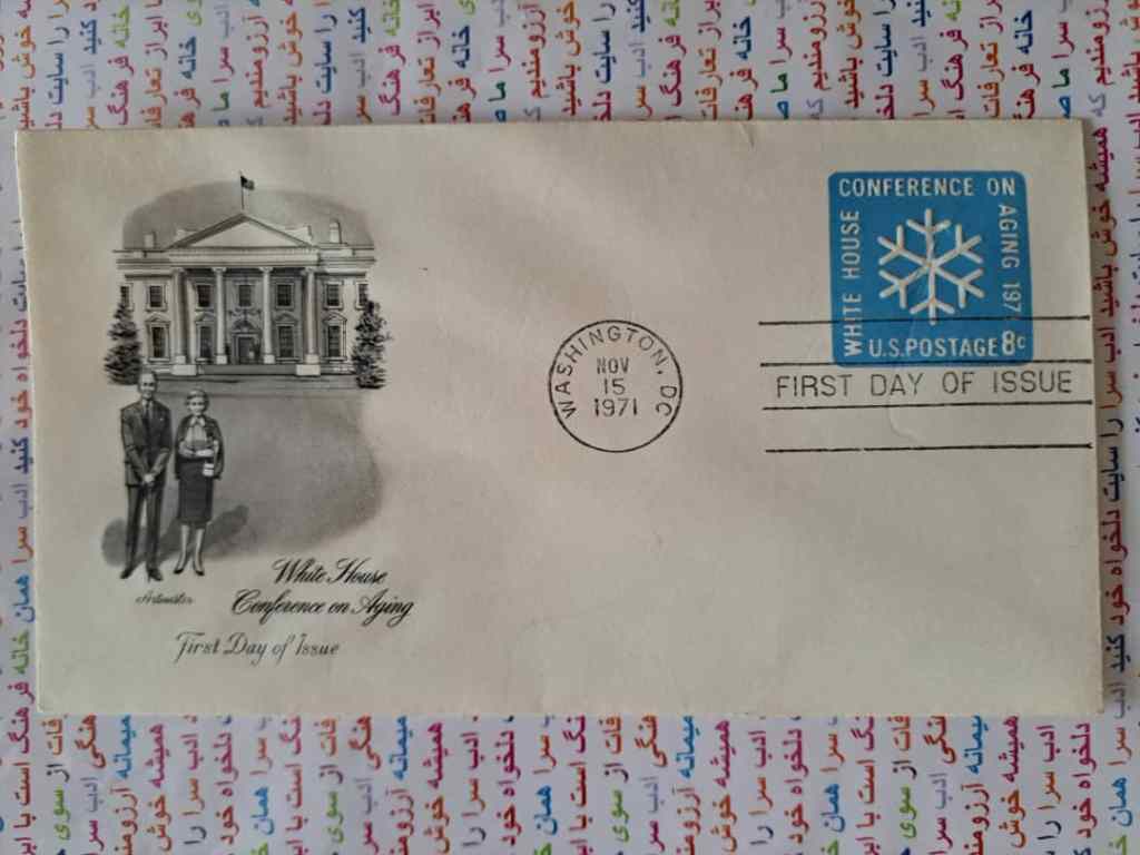 شرح کالا: پاکت مهر روز یادگاری برگزاری کنفرانس در باره افراد مسن در 15 نوامبر 1971