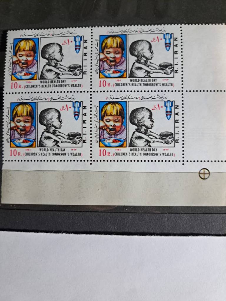 شرح کالا: بلوک چهارتایی تمبر یادگاری روز بهداشت جهانی سال 1363