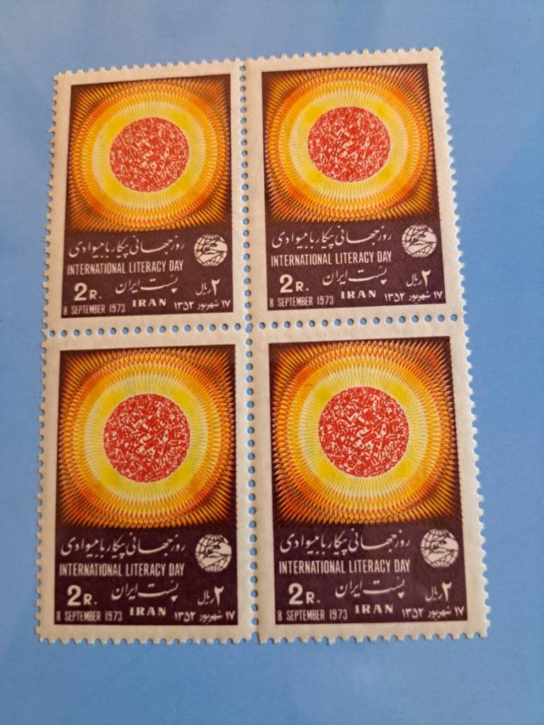 شرح کالا: بلوک تمبر یادگاری روز پیکار با بیسوادی سال 1352