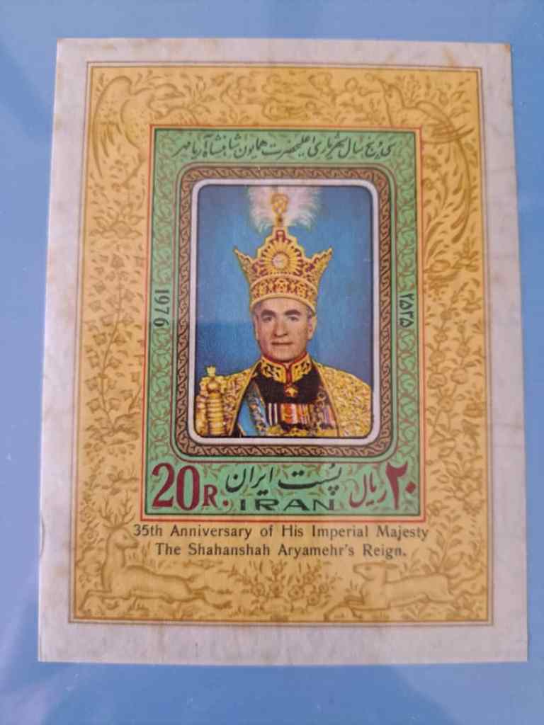 شرح کالا: تمبر یادگاری سی و پنجمین سال سلطنت محمد رضا پهلوی مینیاتور شیت
