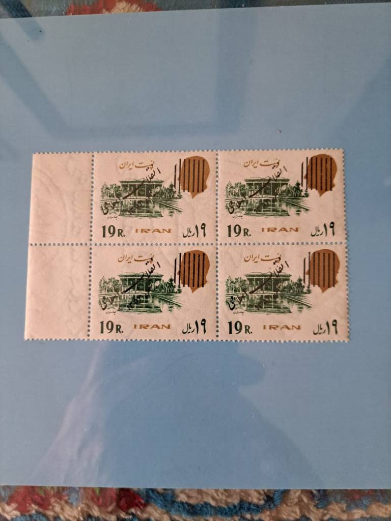 شرح کالا: بلوک چهارتایی تمبر پستی سری نوزدهم با سورشارژ انقلاب اسلامی در بلوک 4 تایی در سال 1358