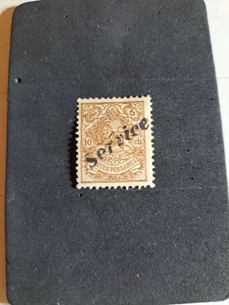 شرح کالا: تمبر 10 شاهی مظفرالدین شاه سال با مهر سرویس 1282