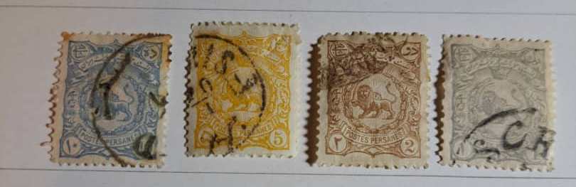 شرح کالا: چهار رقم از تمبرهای مظفرالدین شاه سال 1278