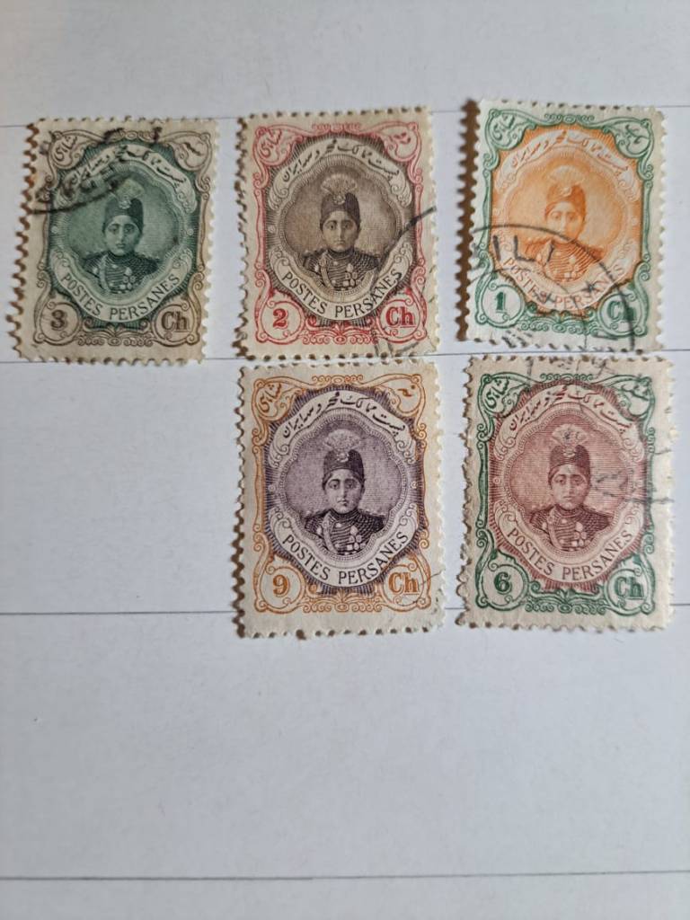 شرح کالا: تمبر 5 رقم تمبر احمد شاهی کوچک سال 1288