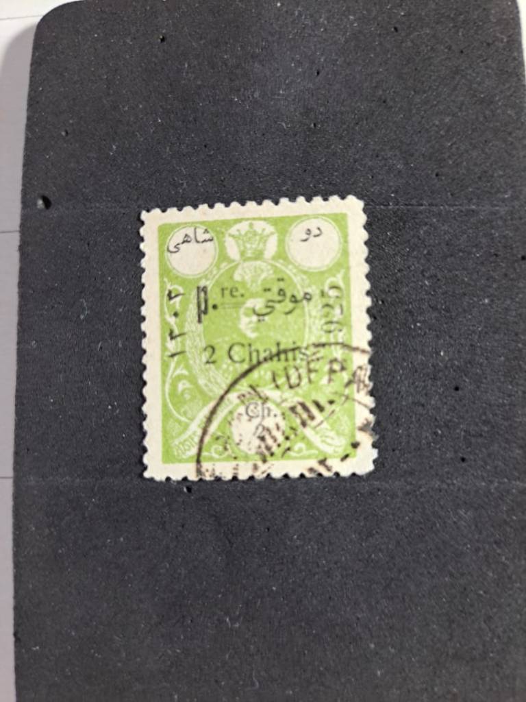 شرح کالا: تمبر دو شاهی احمد شاه با مهر موقتی 1303