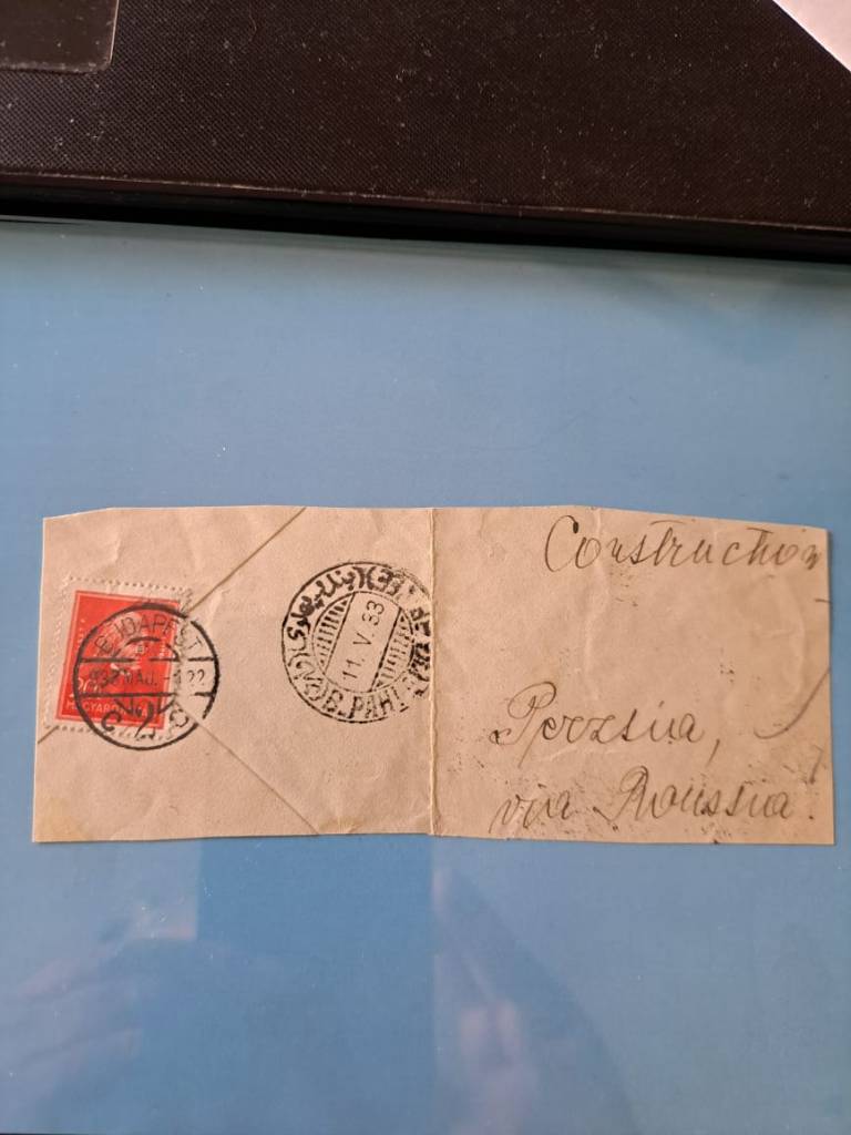 شرح کالا: مهر وارده مراسلات به بندر پهلوی در روز 11 مه 1933 روی قسمتی از نامه ارسال شده از بوداپست مجارستان در روزی که نامشخص است.