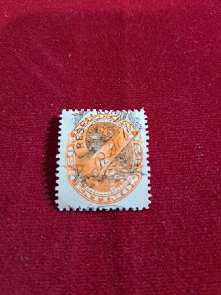 شرح کالا: تمبر ونزوئلا، چاپ Resellada روی Sc #131، رنگ نارنجی 50c. )1900).