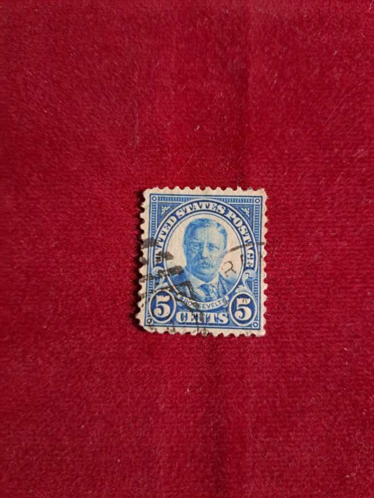 شرح کالا: تمبر 5 سنت امریکا برنگ آبی سیر منتشر شده در سال 1924 شماره 586 با تصویر تئودور روز ولت