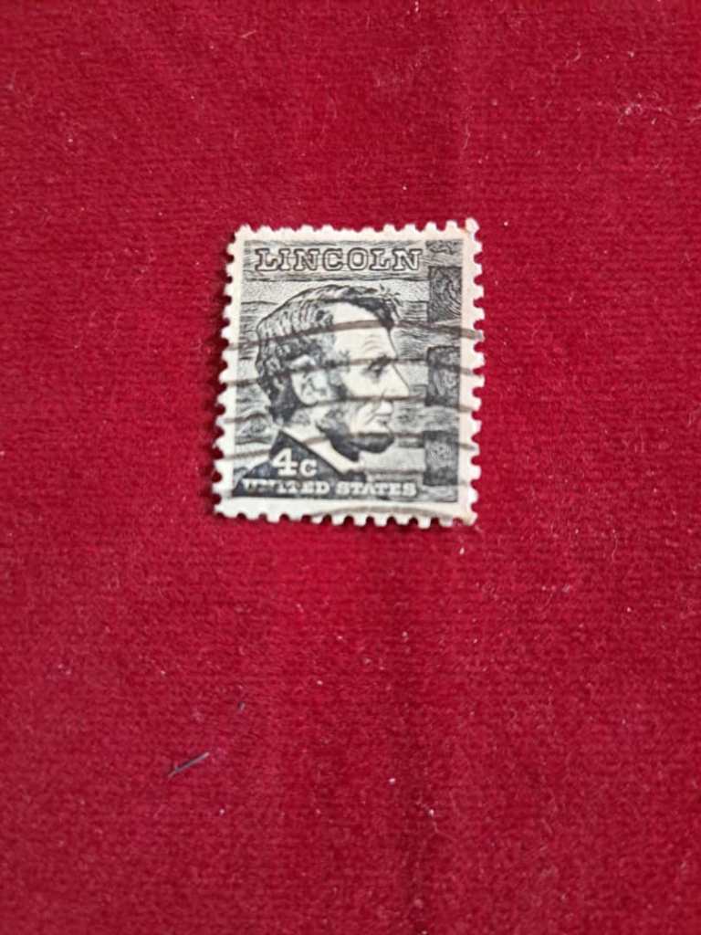 شرح کالا: تمبر 4 سنت امریکا برنگ سیاه و سفید منتشر شده در سال 1965 با تصویر آبراهام لینکلن
