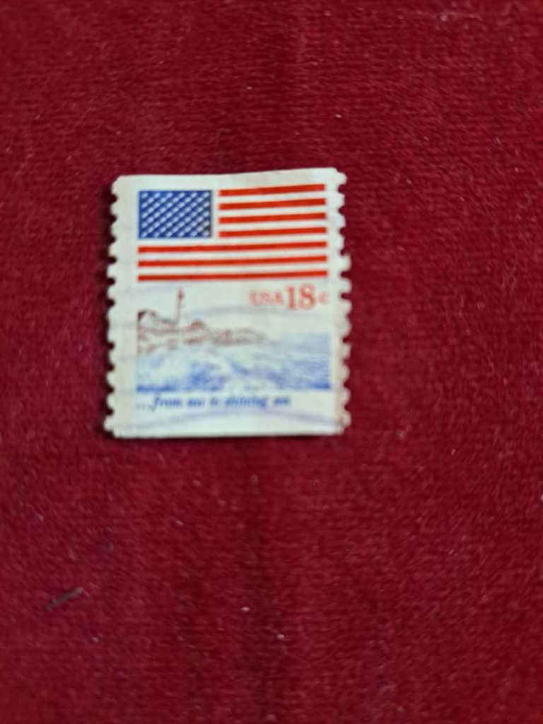 شرح کالا: تمبر 18 سنت امریکا شماره 1891 از دریا به ساحل درخشان با تصویر پرچم امریکا و ساحل دریا منتشر شده در سال 1981