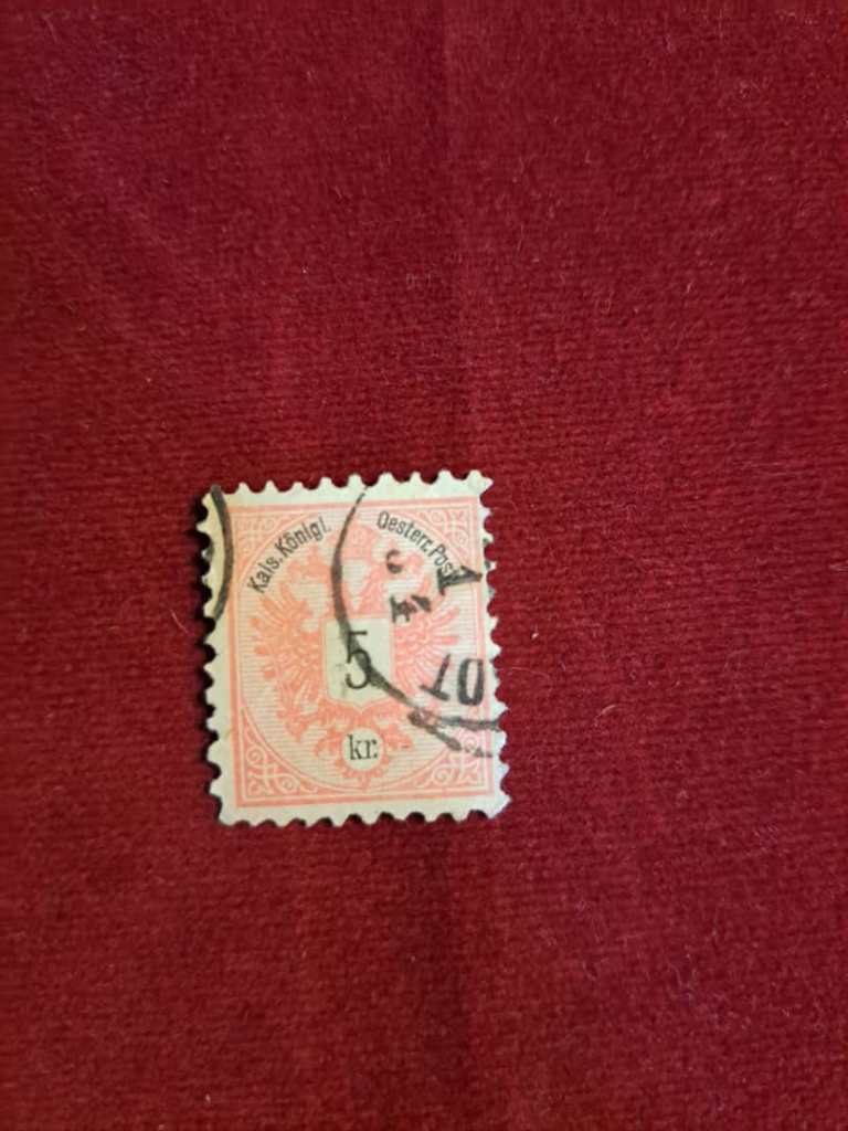 شرح کالا: تمبر پستی 5 کریوزر آرم رسمی اتریش 1883 قرمز و سیاه 1883. شماره اسکات 43.
