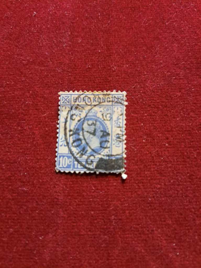 تمبر هنگ کنگ 10 سنت برنگ آبی 1912-1914 # 137. با تصویر جرج پنجم. اسکات # 114