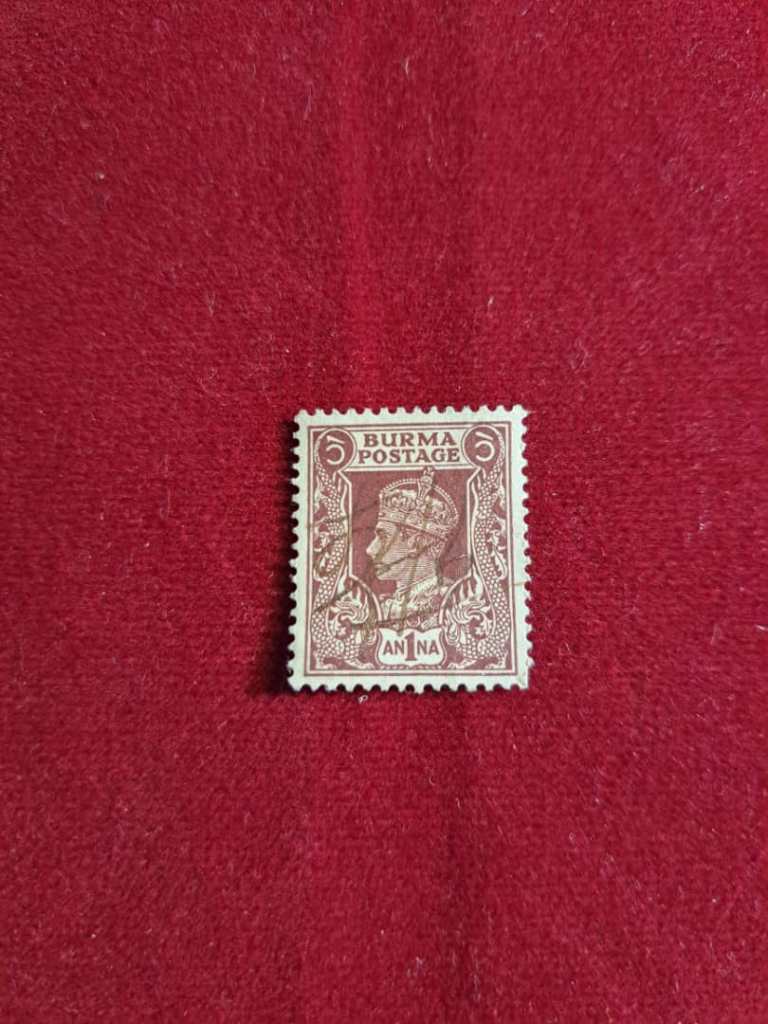 تمبر یک آنای قهوه ای برمه (1938-1948) با تصویر جرج ششم. اسکات# 22