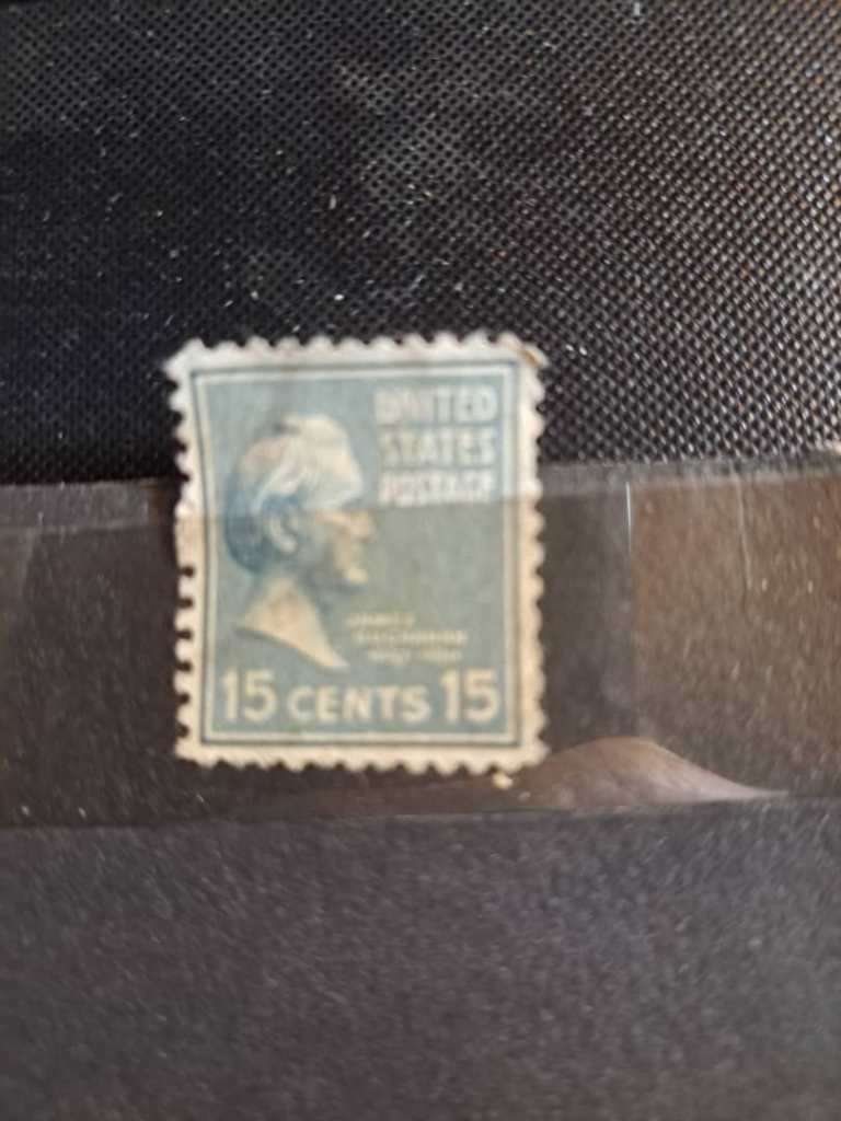 تمبر 15 سنت امریکا برنگ خاکستری سال 1938 با تصویر جیمز بوکانان. شماره در کاتالوگ اسکات 820