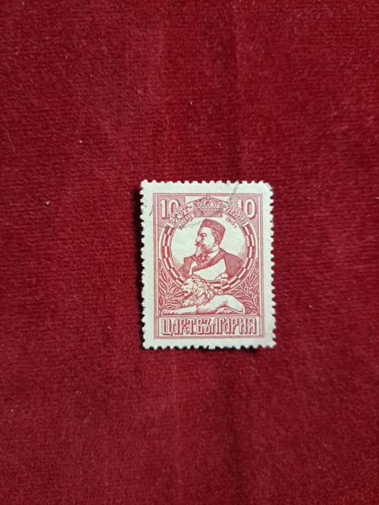 تمبر 10 لوا بنفش بلغارستان. اشغال ماسادونیا. 1915-1921. با تصویر تزار فردیناند سوم.