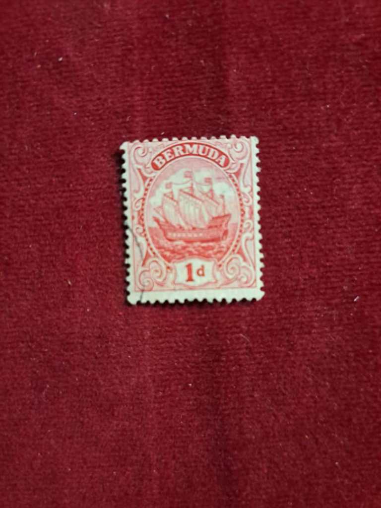 تمبر 1 پنی کشتی قرمز برمودا. 1910.