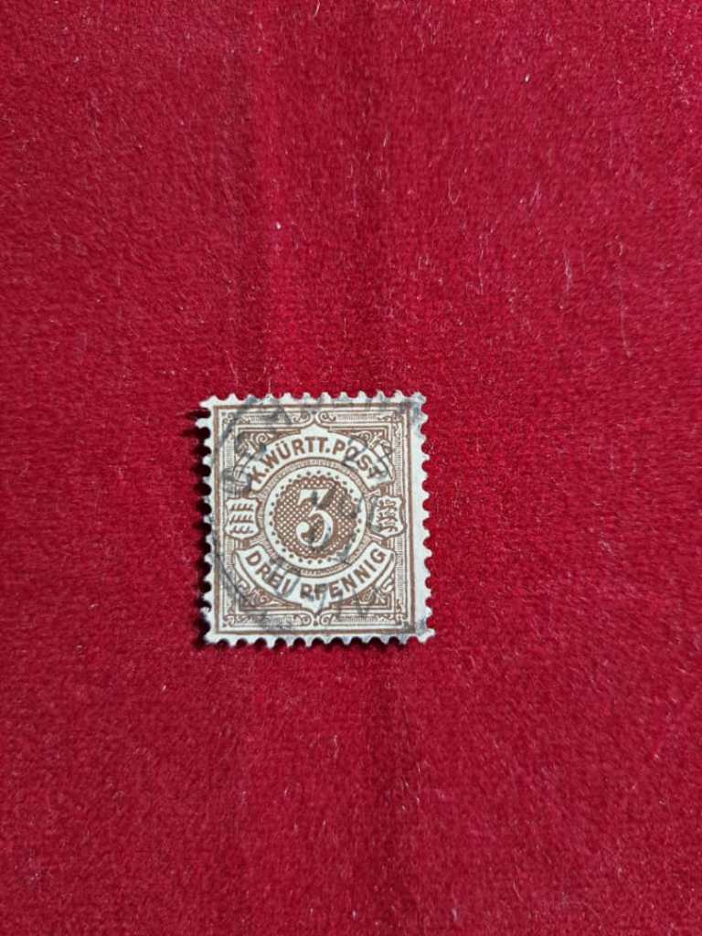 تمبر قهوه ای 3 فینیگ آلمان ورتمبرگ 1890. اسکات # 57