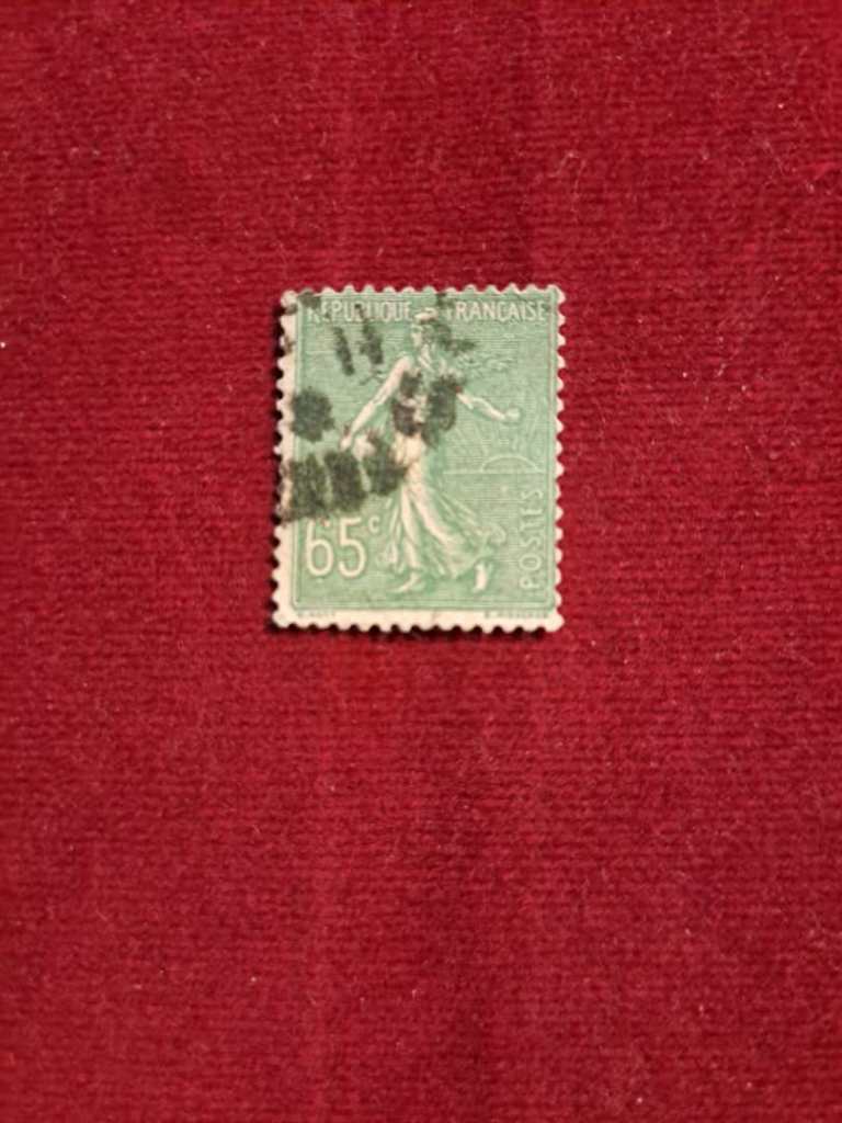 تمبر سبز زیتونی 65 سانتیم فرانسه تیپ سره. Semeuse/Ceres. 1911-1925.