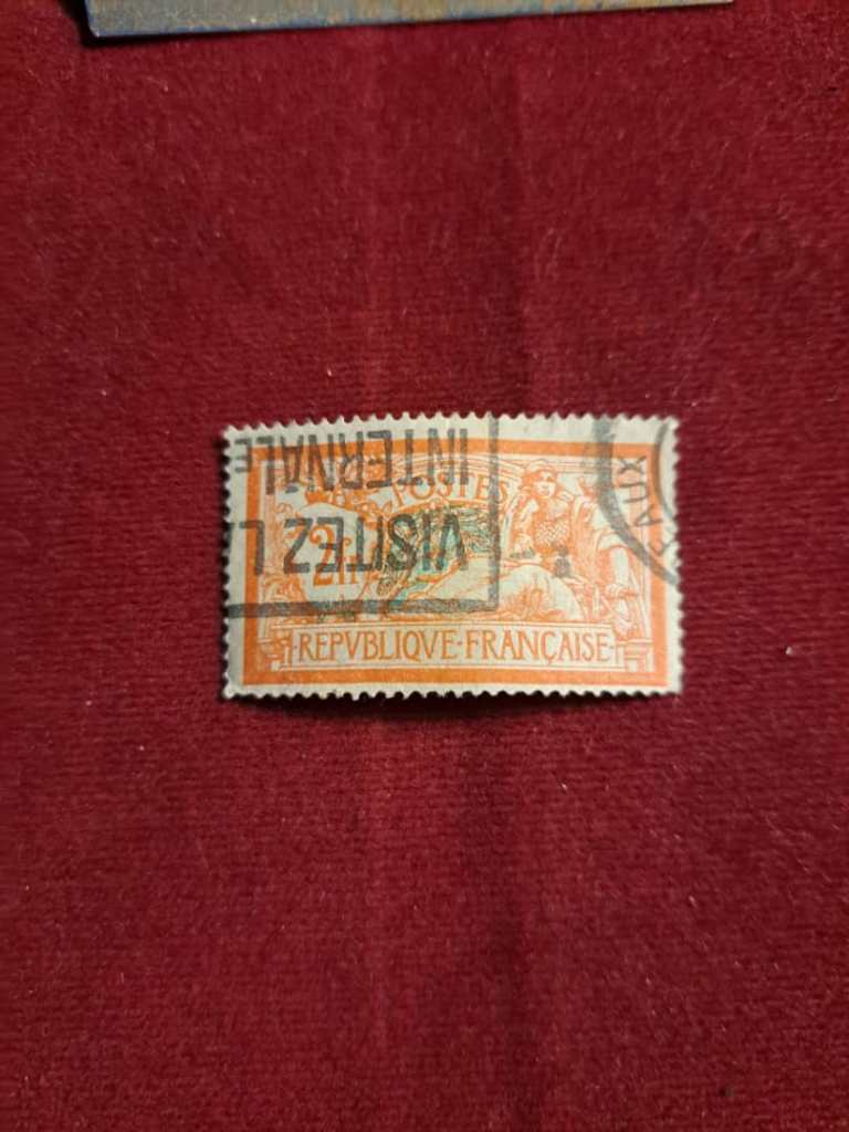 تمبر 2 فرانک نارنجی و آبی کم رنگ فرانسه تیپ مرسون. 1926. اسکات # 127.