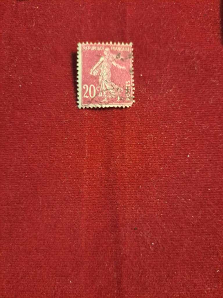 تمبر 20 سانتیم قرمز بنفش فرانسه. تیپ Sower . 1907-1920.