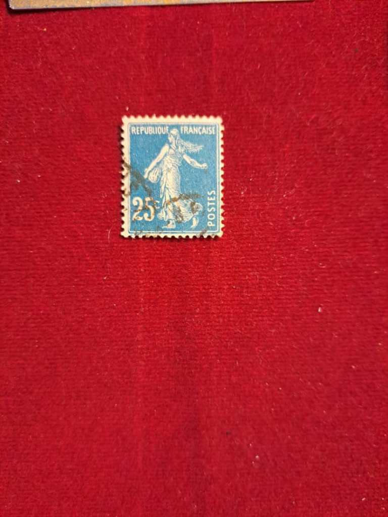 تمبر 25 سانتیم آبی فرانسه. تیپ Sower . 1907-1920.