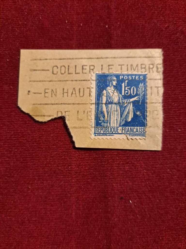 یک عدد تمبر یک فرانک و 50 سانتیم آبی سیر فرانسهسال 1931. اسکات # 282 روی کاغذ.