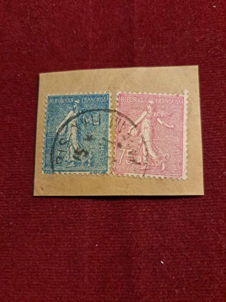 تمبر یک فرانک و تمبر 75 سانتیم فرانسهسال 1903. اسکات # 151 و 154 روی کاغذ.