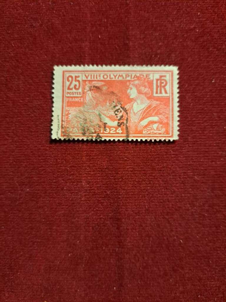 تمبر 25 سانتیم قرمز فرانسه. 1924 . با نام المپیک تابستانی پاریس. اسکات # 109.