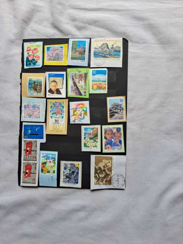 مجموعه ای از تمبرهای با ارزش ژاپن. واریته خوبی از مهرهای باطل کننده تمبر در ادارات ژاپن.