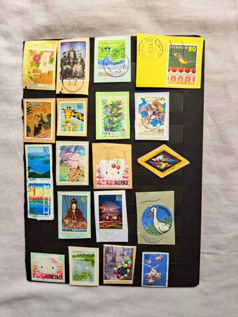 مجموعه ای از تمبرهای با ارزش ژاپن. واریته خوبی از مهرهای باطل کننده تمبر در ادارات ژاپن.