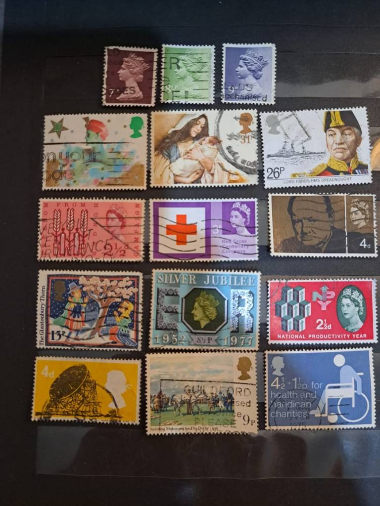 مجموعه ای از 15 تمبر متفاوت با ارزش انگلیس