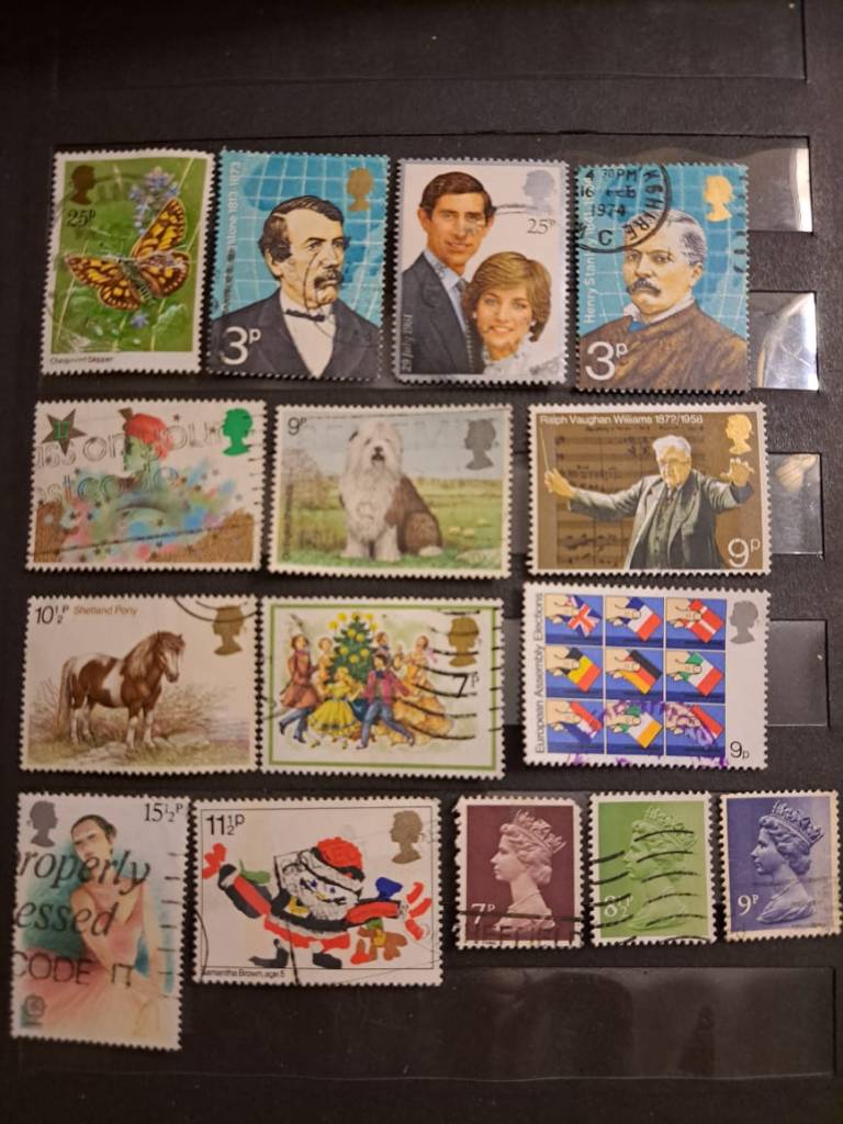 مجموعه ای از 15 تمبر متفاوت با ارزش انگلیس