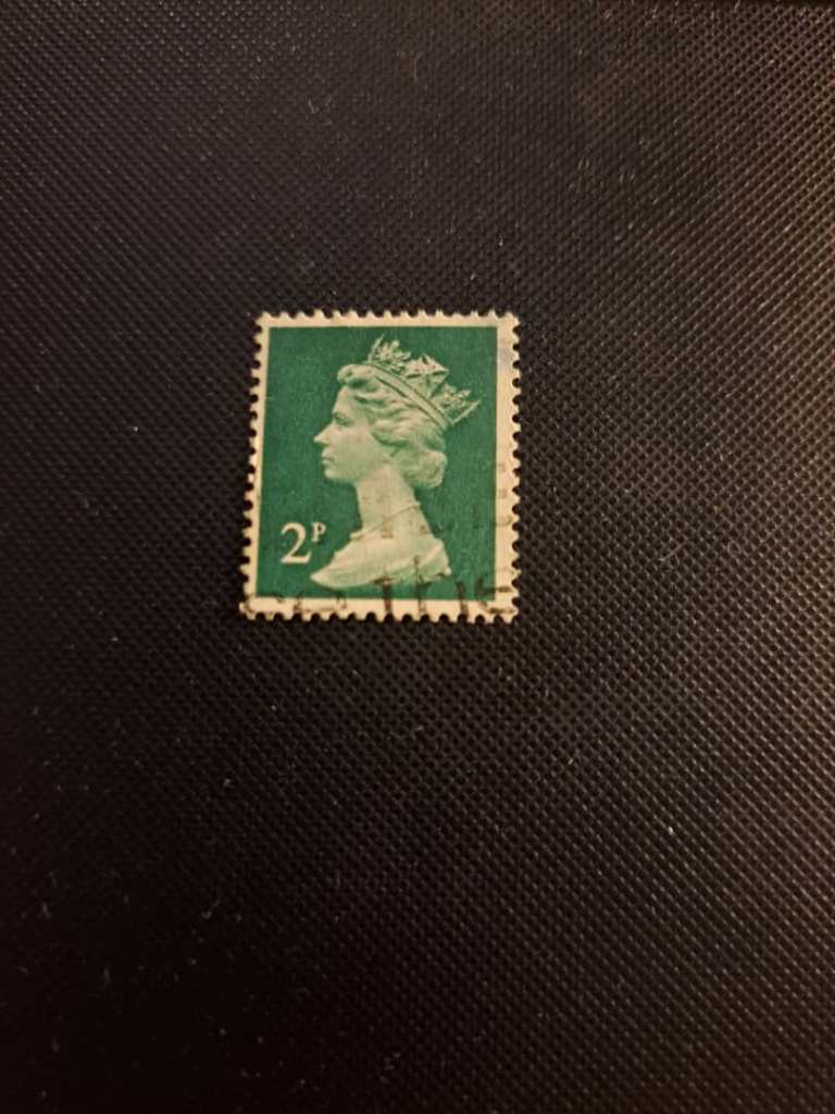 تمبر 2 پنس انگلیس برنگ سبز خاکستری سیر سال 1971