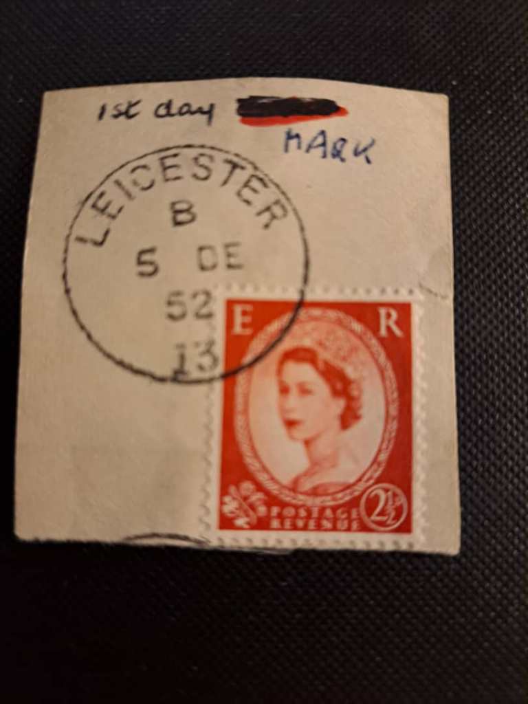 تمبر ویلدینگ 2 پنس و نیم انگلیس برنگ قرمز با مهر ابطال در اولین روز انتشار، روز پنجم دسامبر 1952