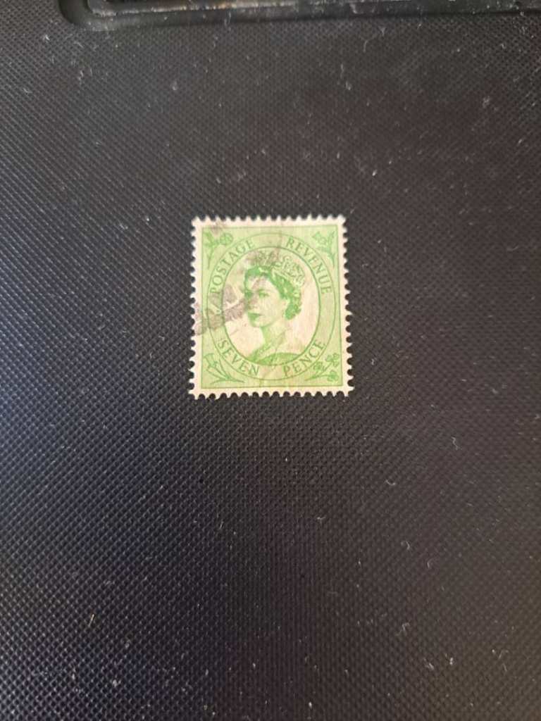 تمبر 7 پنس سبز روشن ویلدینگ الیزابت دوم