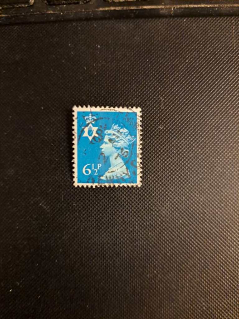 تمبر 6 پنس و نیم سبز زنگاری ایرلند شمالی با تصویر الیزابت دوم .