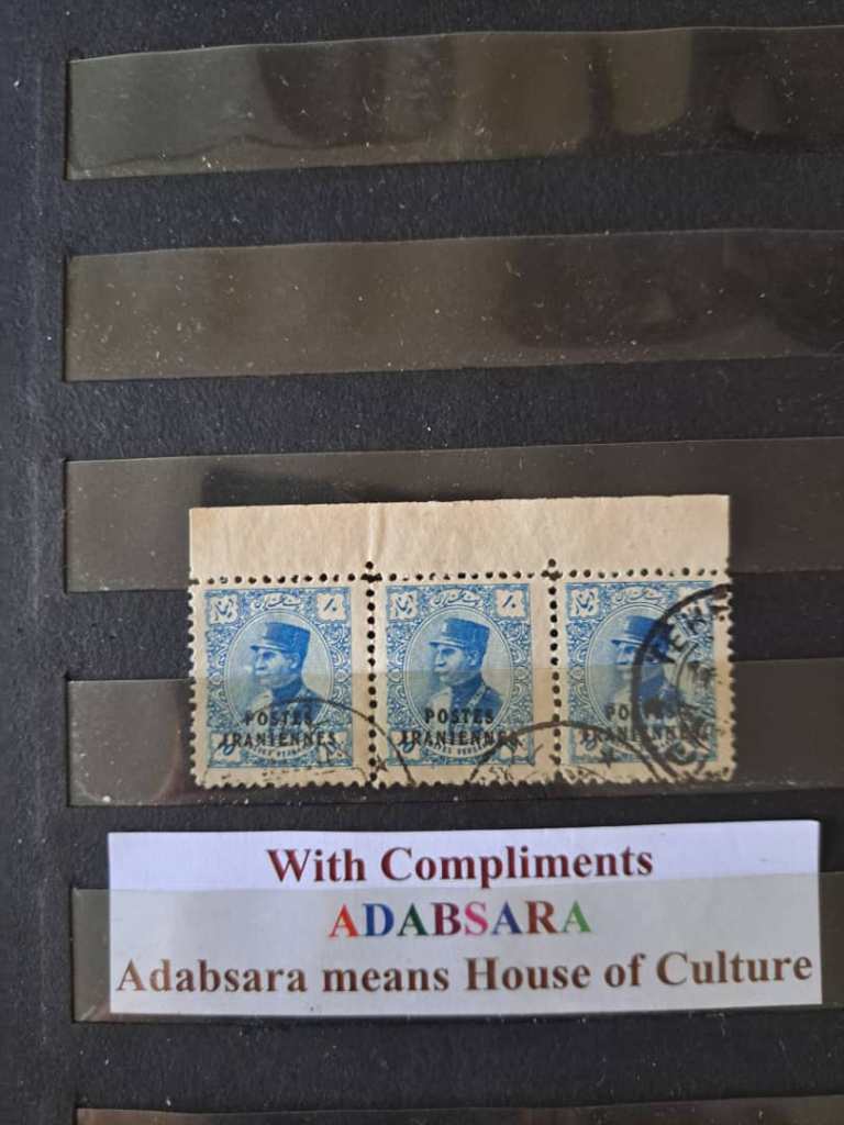 نوار سه تایی تمبر 10 دینار منتشر شده در سال 1314 با سورشارژ پست ایران بفرانسه