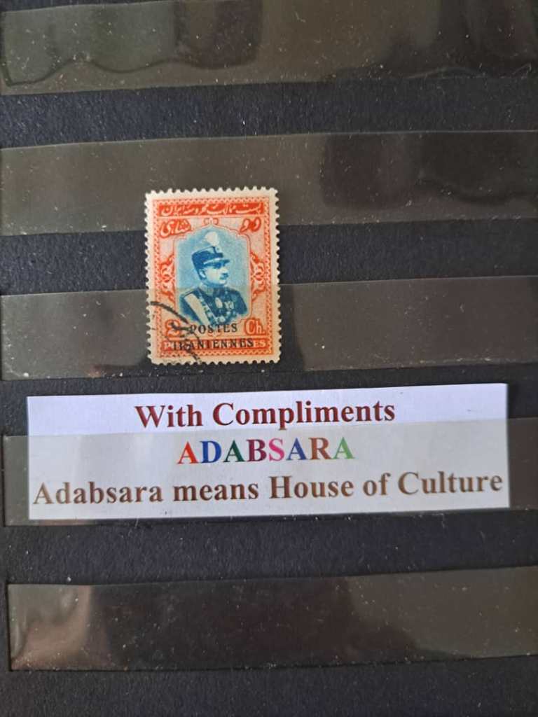 تمبر دو شاهی سری تاجگذاری منتشر شده در سال 1305 با سورشارژ پست ایران بفرانسه در سال 1314