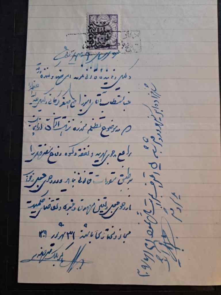 یک عدد تمبر یک قران عدلیه در روی سندی در تاریخ 31 شهریور 1309