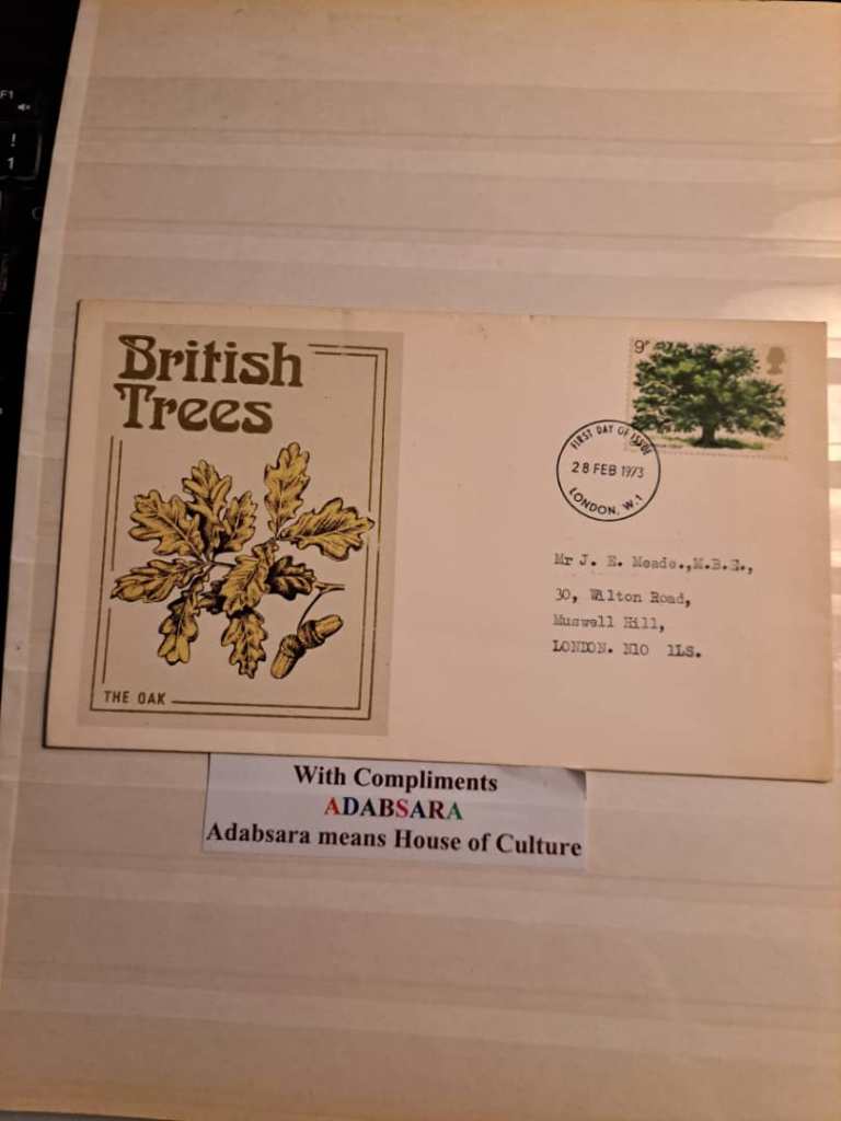 پاکت مهر روز درخت های انگلیس با تمبر 9 پنس منتشر شده در روز 28 فوریه 1973