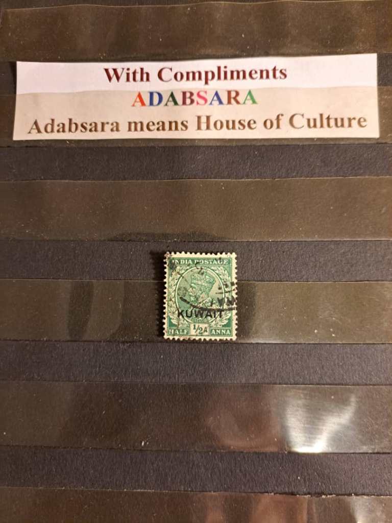 تمبر نیم آنای سبز جرج پنجم هند با سورشارژ کویت