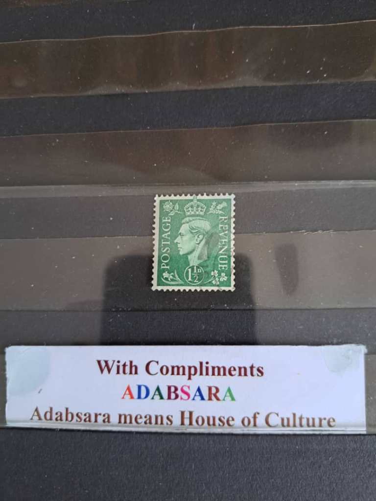 تمبراستفاده شده یک پنس و نیم انگلیس برنگ سبز سیر جرج ششم پادشاه بریتانیا 1937-1947.