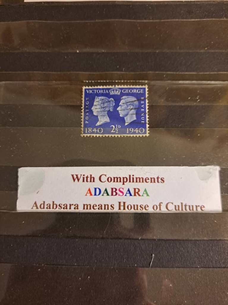 تمبر استفاده شده دو و نیم پنی آبی سیر انگلیس سال 1940 با تصویر ملکه ویکتوریا و جرج ششم پادشاه بریتانیا