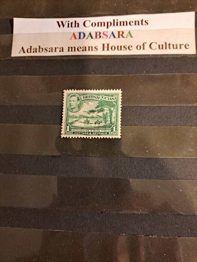 تمبر استفاده شده 1 سنت گینه انگلیس برنگ سبز. استنلی گیبون شماره 308 با تصویر مزرعه برنج