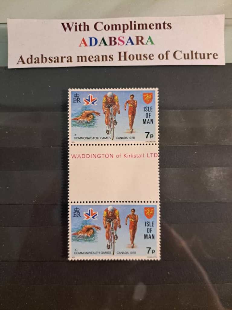 یک جفت تمبر مینت (استفاده نشده مهرنخورده و بدون شارنیه با چسب اصلی)جزیره من Isle of Man ]با گوتر با نام ورزش بمناسبت بازی های کشورهای مشرک المنافع منتشر شده در سال 1978