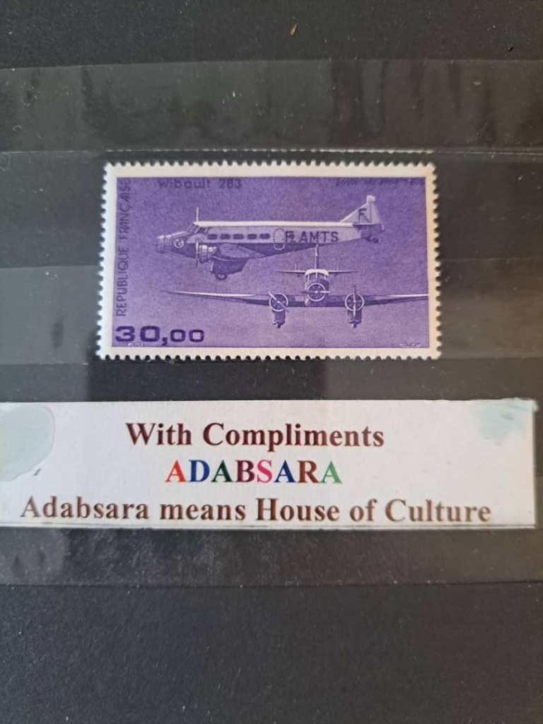 تمبر 30 فرانک  فرانسه برنگ بنفش  با تصویر دو هواپیما. اسکات # سی 58